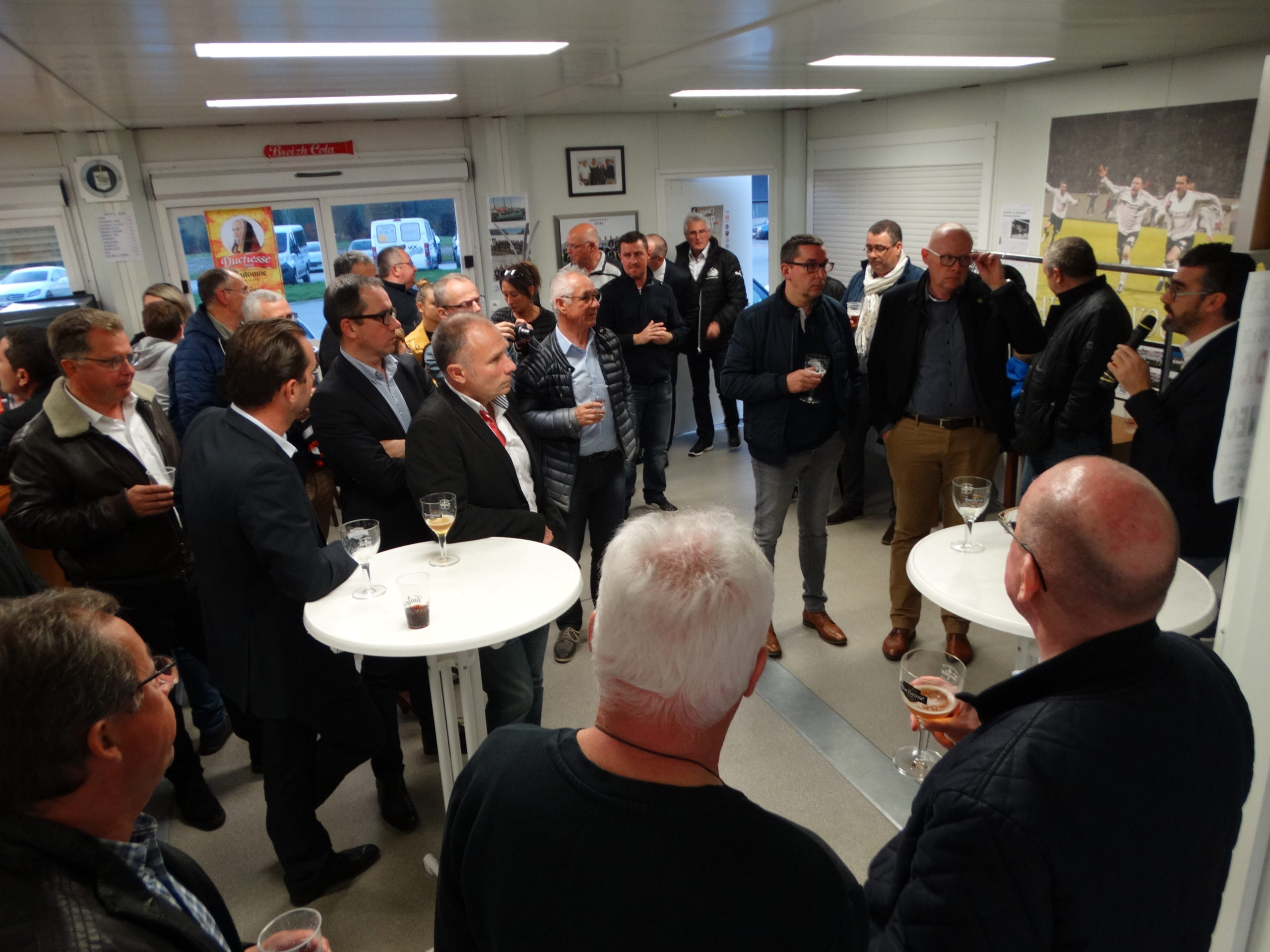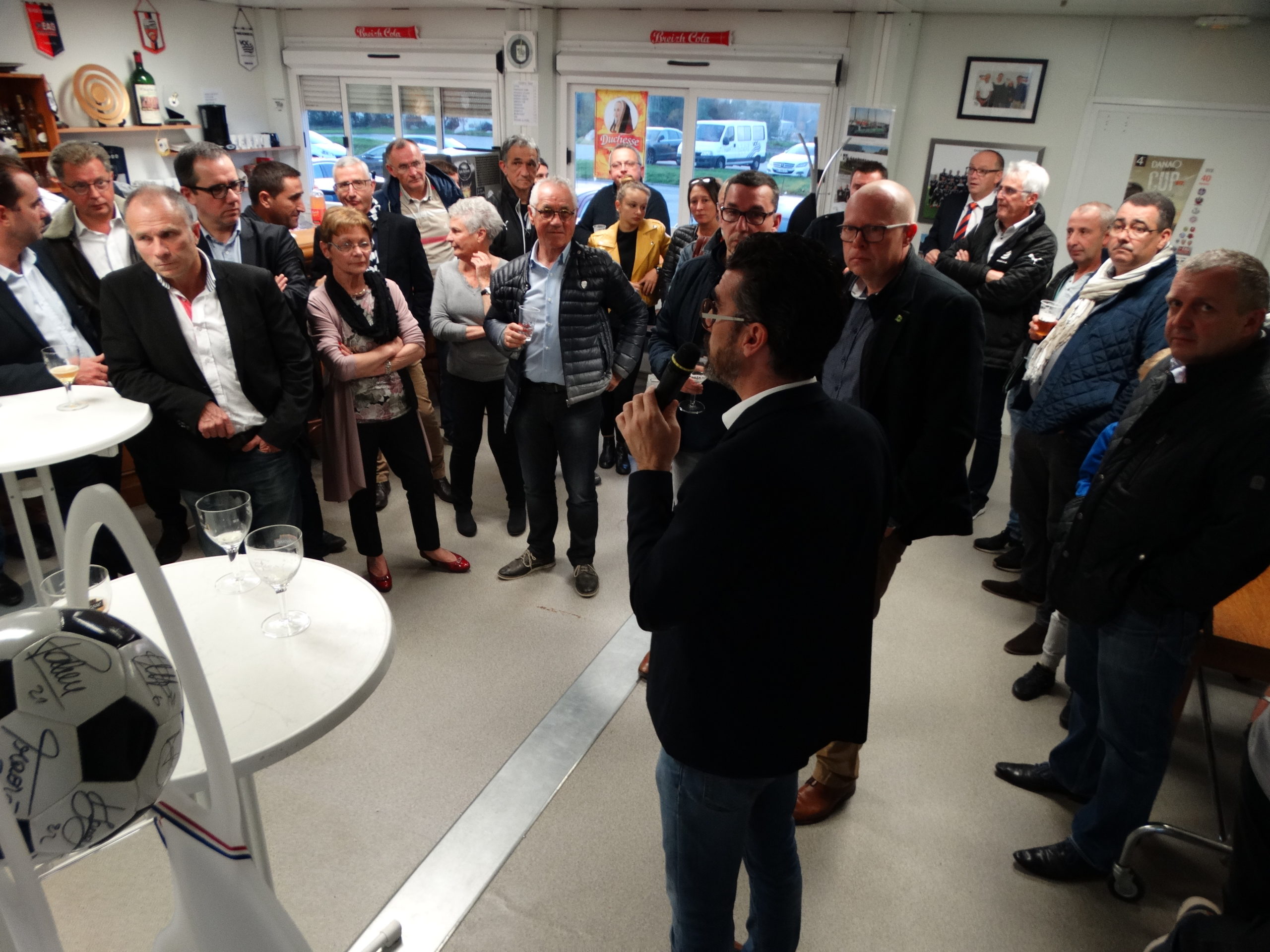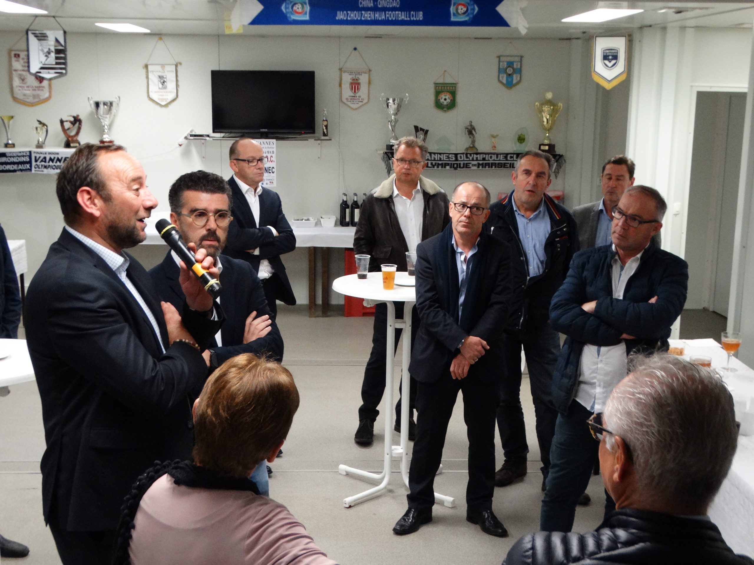 Le VANNES OLYMPIQUE CLUB a acceuilli jeudi au Pérenno ses partenaires pour une soirée conviviale. Accompagnés des co-présidents Stéphane KERDODE et René TOZZO, ils ont ainsi pu découvrir et visiter l’ ensemble des installations du club (nouvelle salle de réception, nouveaux vestiaires, terrains d’ entrainement avec une séance en cours pour le groupe N3…). Cette réception organisée par Yves LE MEUR s’ est clôturée par un buffet campagnard avec les joueurs et le staff du groupe de Laurent HERVE. Mr David ROBO, maire de Vannes et Madame LE BRETON pour le Conseil Départemental sont également intervenus pour souligner leur attachement au VOC. Les nombreux partenaires présents ont apprécié cette initiative et cette découverte du club vue de « l’intérieur »…